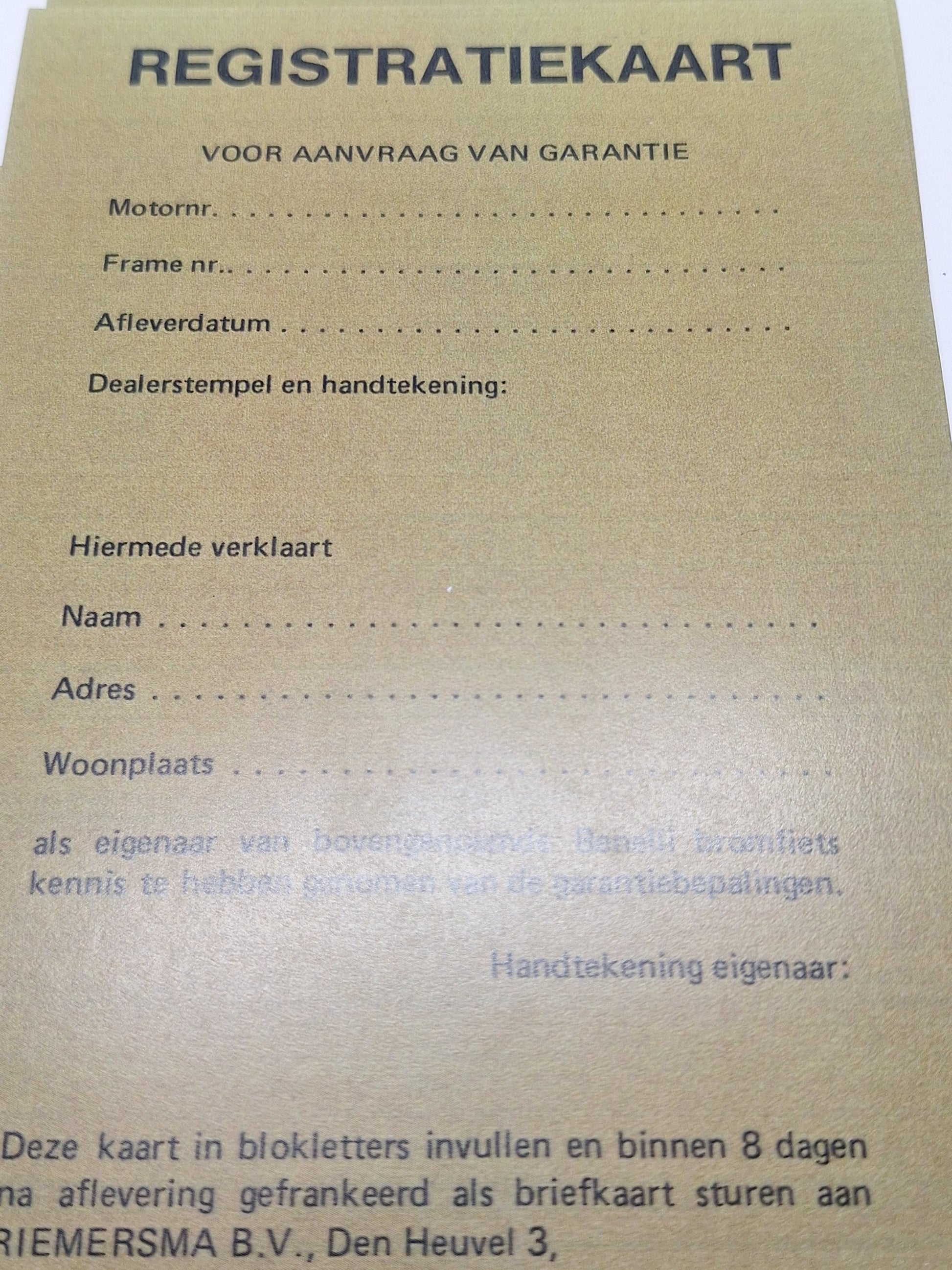 Registratiekaart Benelli Bromfiets